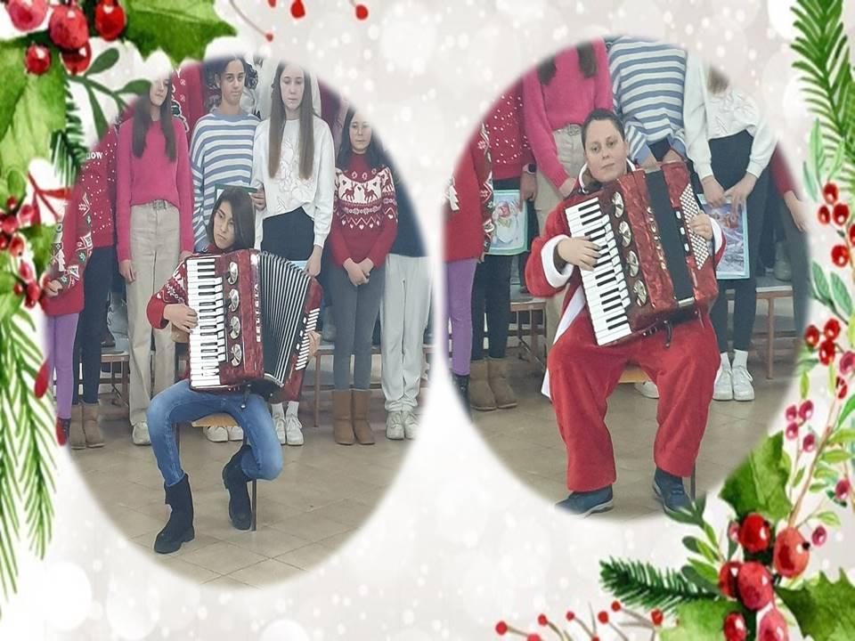 Велики хор ученика виших разреда изводио је божићне песме на неколико светских језика, слушали смо извођења композиција на различитим инструментима (тамбура, хармоника, клавир), уживали у новогодишњој представи ''У потрази за Деда Мразом'' коју су извели ученици петих разреда и са великом пажњом слушали стихове које је рецитовала ученица седмог разреда.